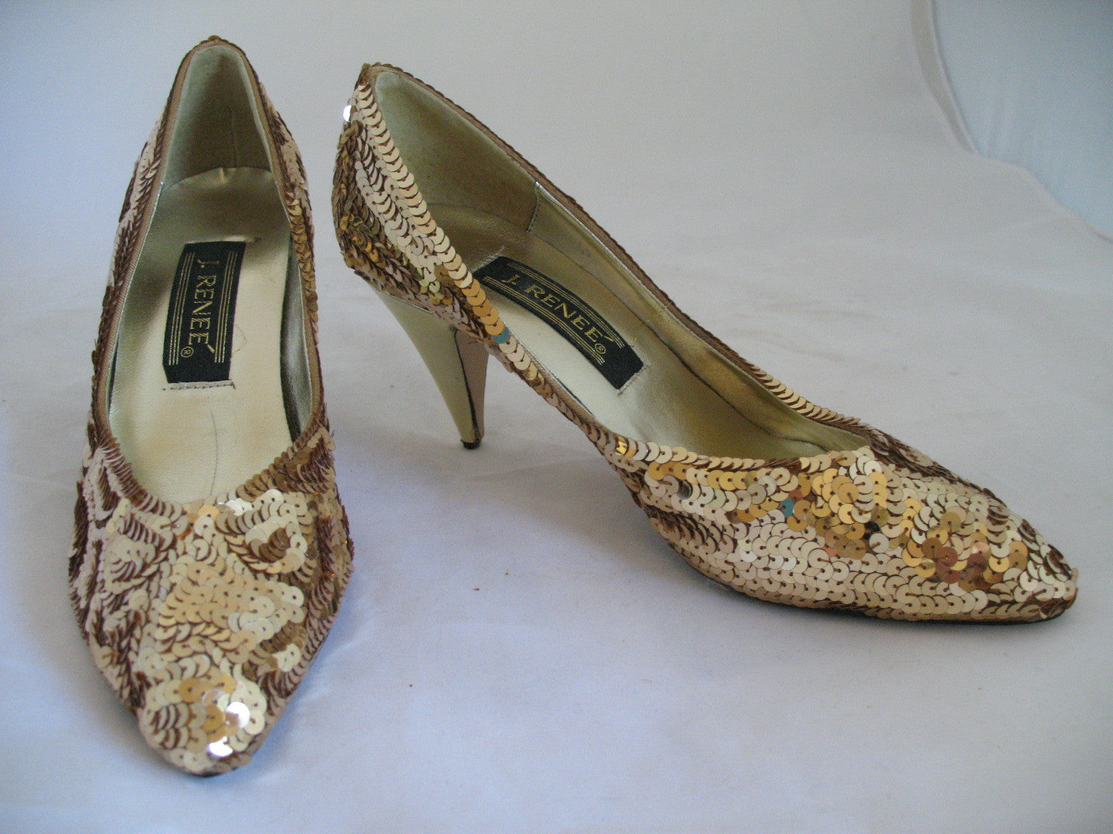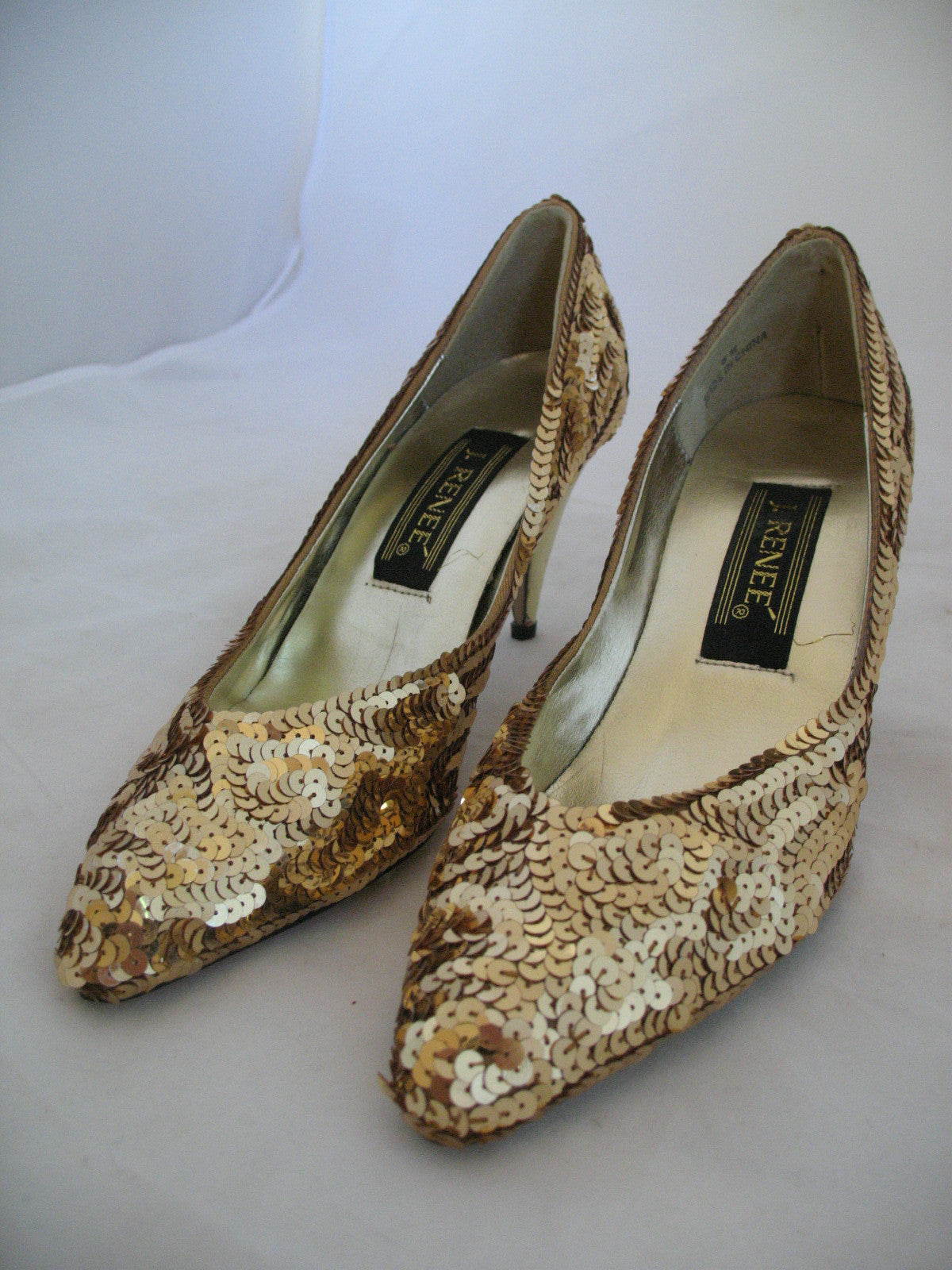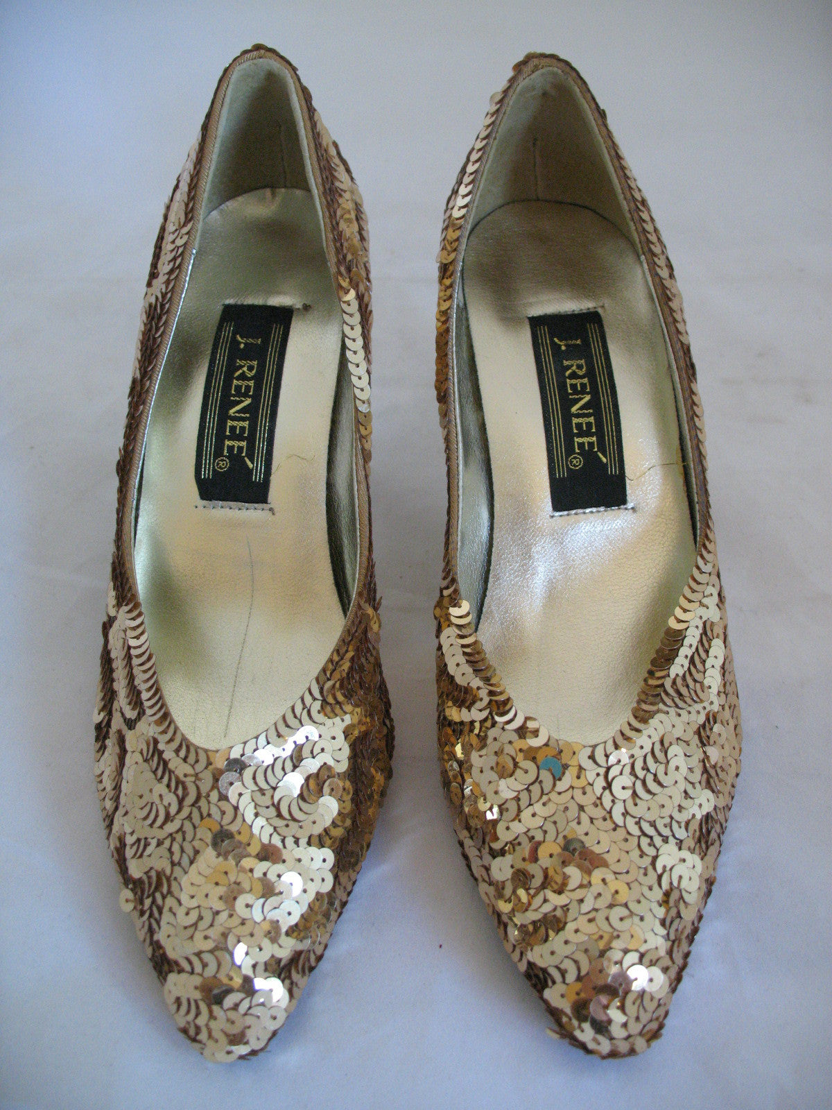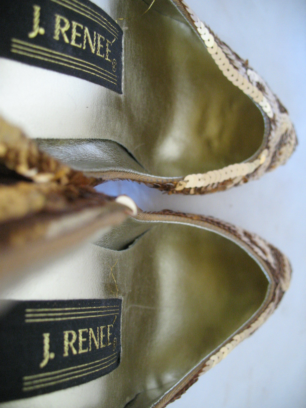 J.RENEE New Without Box with DEFECT (please read) womens metallic yellow gold sequin shoes high heels. Sequins upper. Women's/ladies classic... Read more