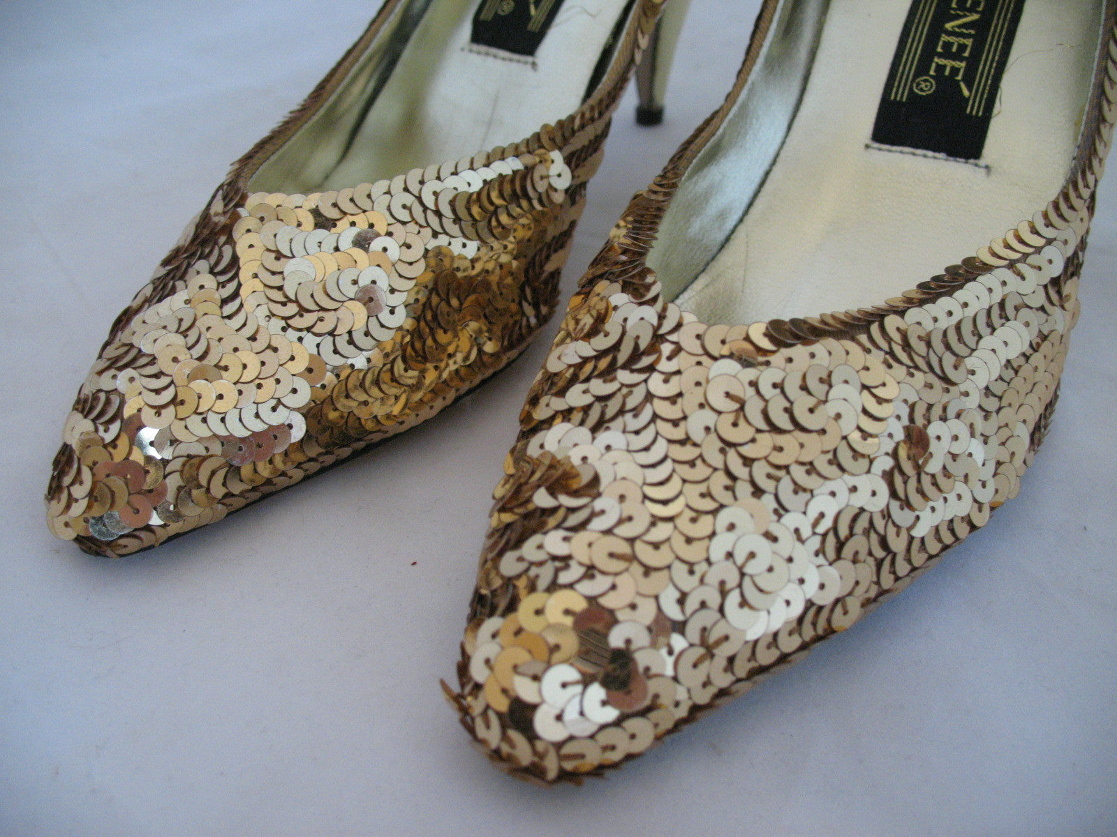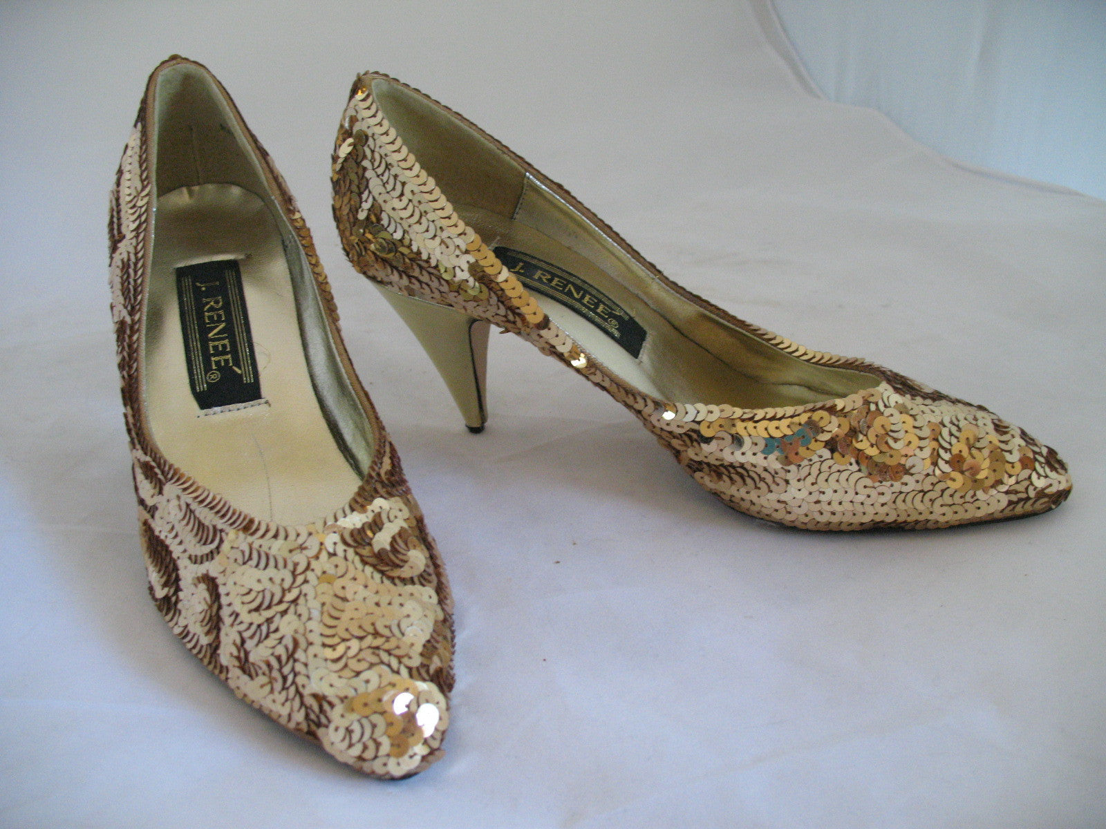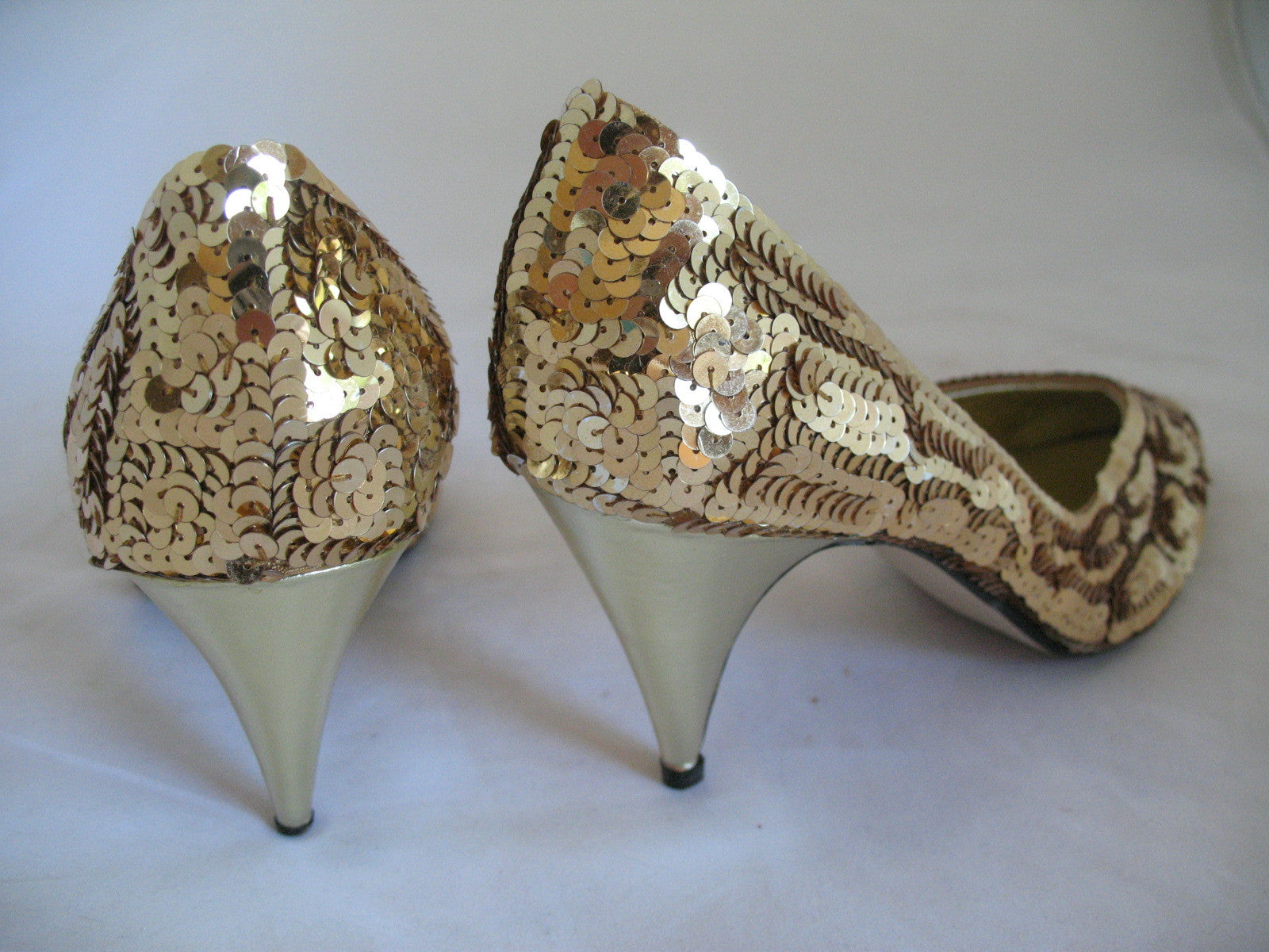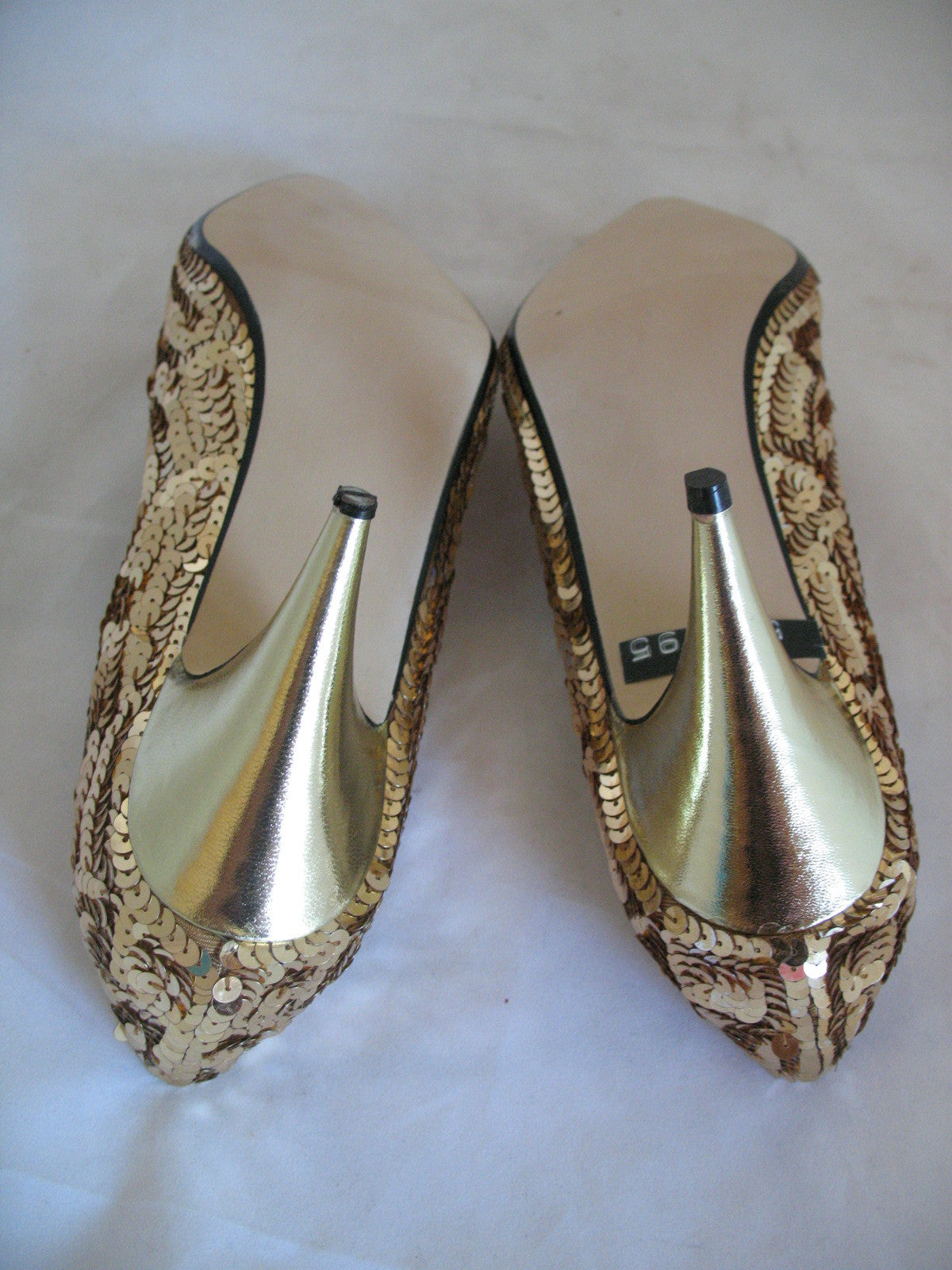 J.RENEE New Without Box with DEFECT (please read) womens metallic yellow gold sequin shoes high heels. Sequins upper. Women's/ladies classic... Read more
